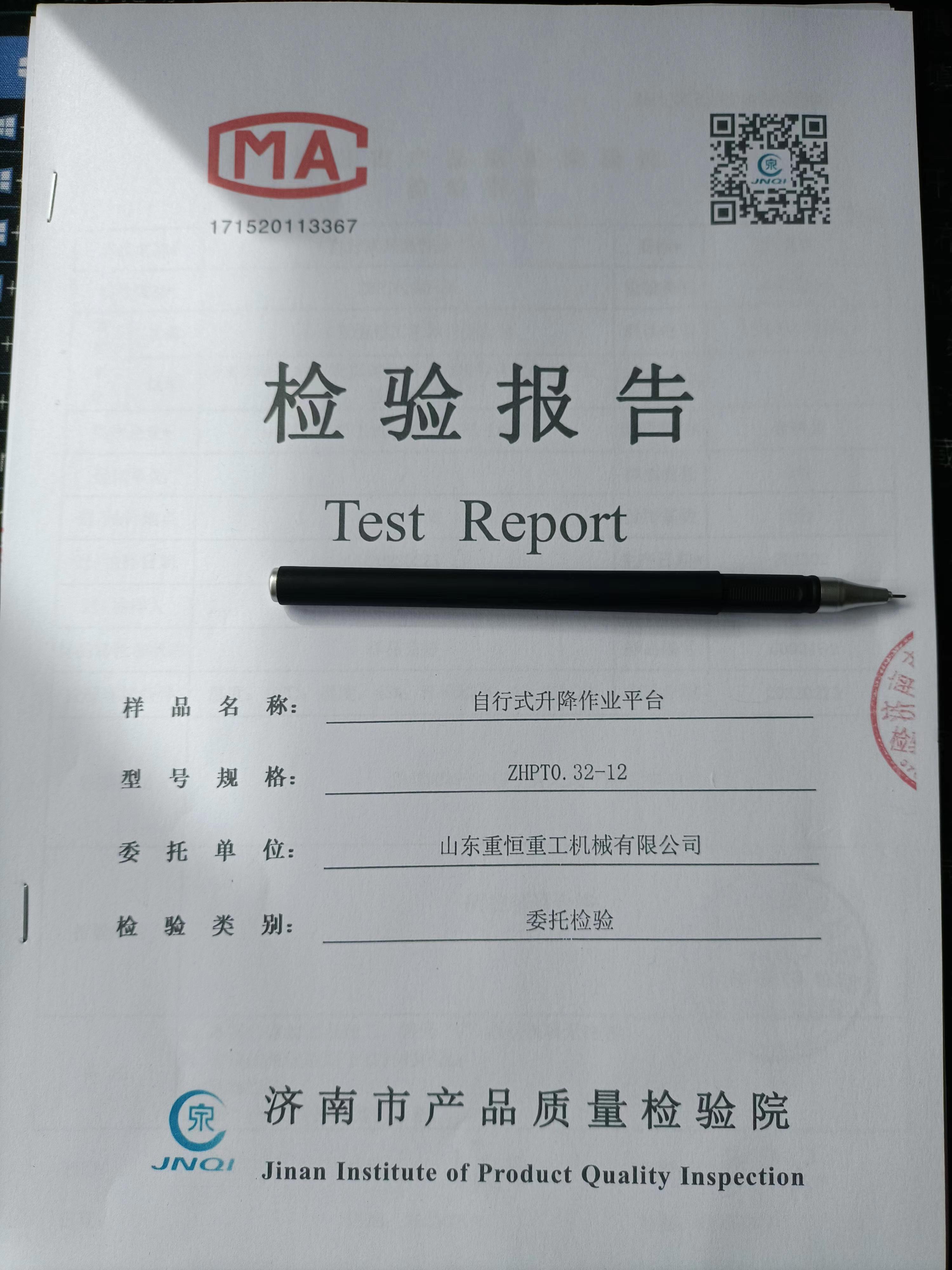 自行式剪叉式升降作業(yè)平臺屬于高空作業(yè)設(shè)備,出售設(shè)備的公司首先要具備官方檢測機(jī)構(gòu)出具設(shè)備的檢驗合格報告, 要對于設(shè)備的型號、規(guī)格、檢驗類別、進(jìn)行檢驗。 委托單位于當(dāng)?shù)氐漠a(chǎn)品質(zhì)量檢驗院...